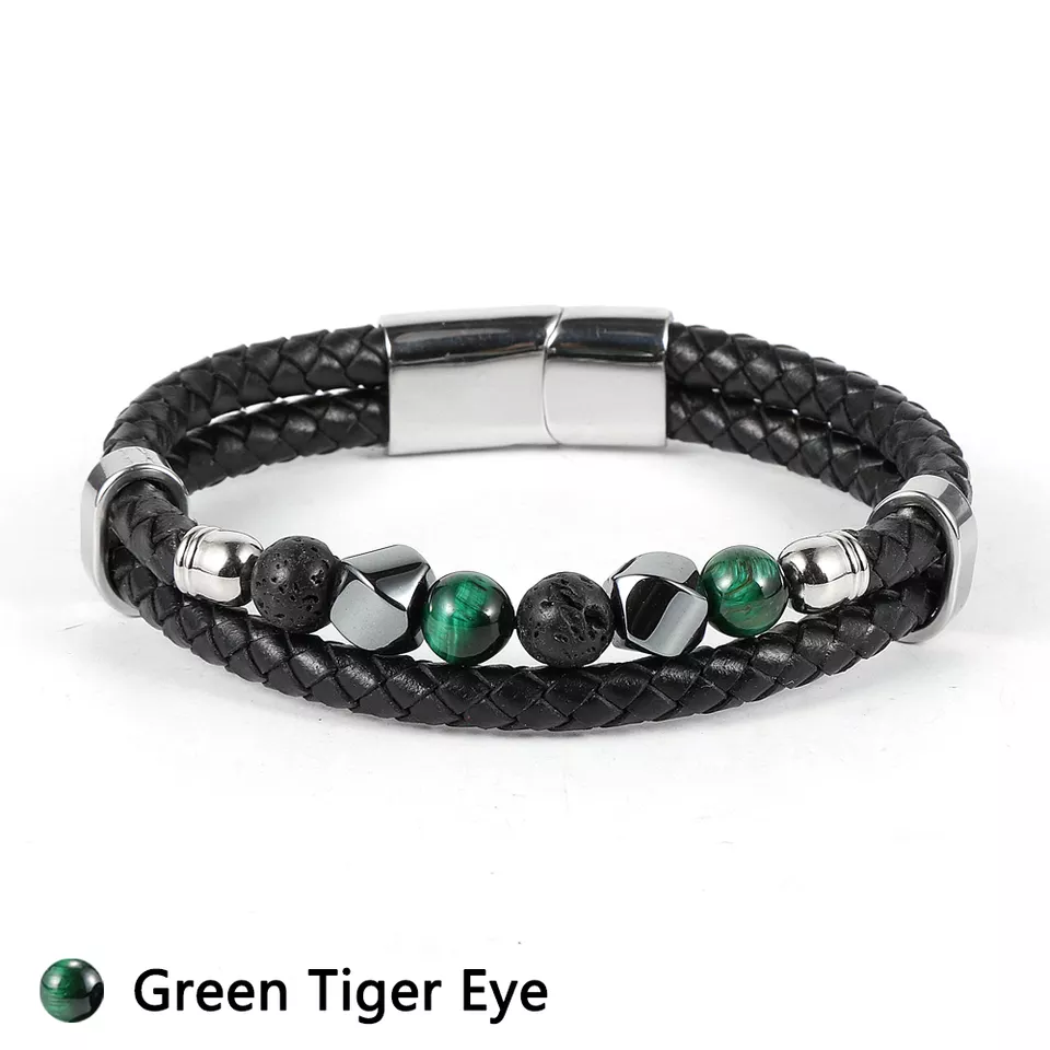 Férfi ásvány karkötő – Macskaszem, két nagyobb kövel