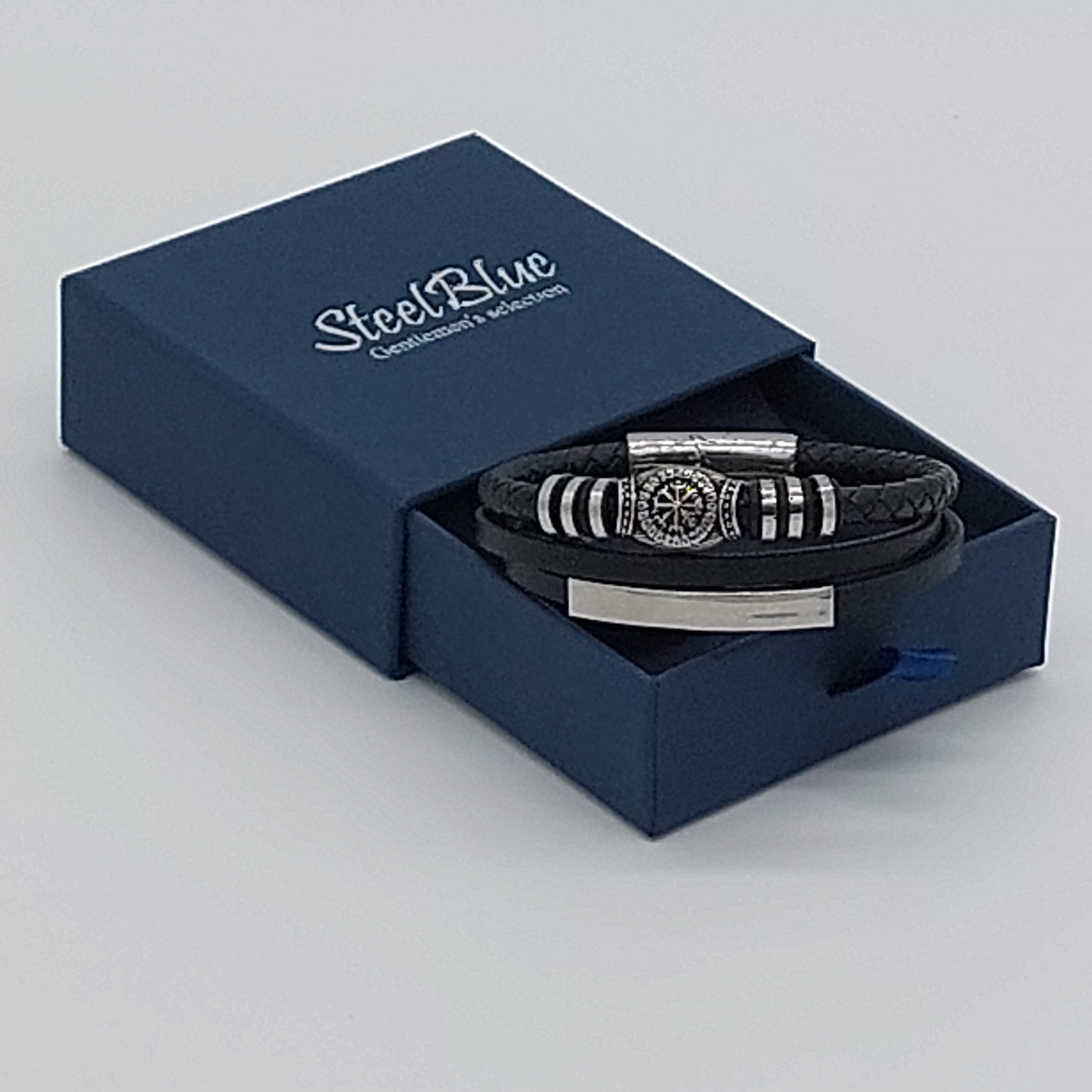 Fekete színű, valódi bőr karkötő, rozsdamentes acél horgonnyal kapcsolódik.